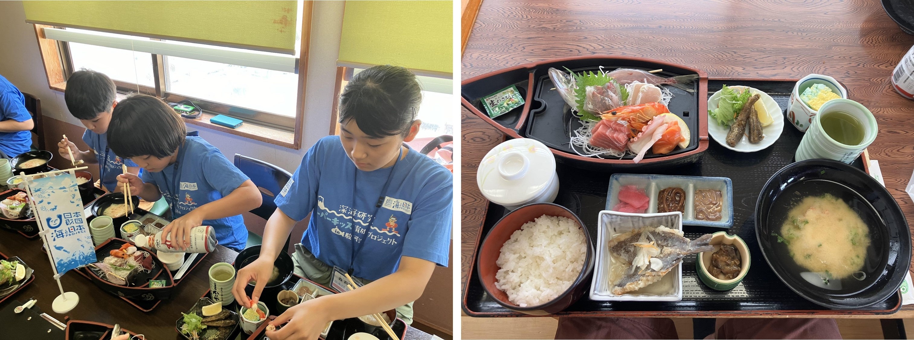 その後、網元直営の「お食事処かにや 戸田本店」で昼食。新鮮な海の幸をはじめ、どれも美味しくいただきました。戸田地区の深海魚「アオメエソ(通称:メヒカリ、トロボッチ)の唐揚げ」も味わうことができました。