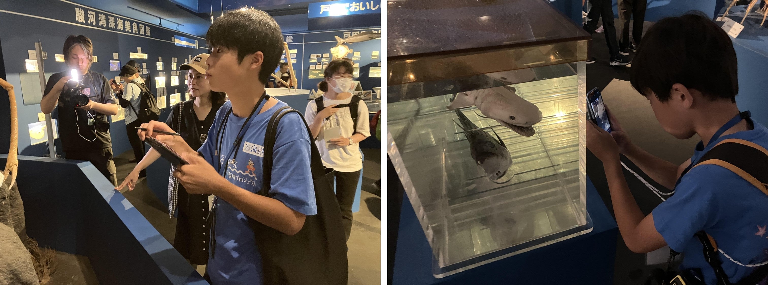 駿河湾深海生物館で「深海魚ガール」青山沙織さんと合流。深海魚の聖地戸田にて、ラブカやヨコヅナイワシをはじめ、珍しい深海生物の標本などを観察しました。