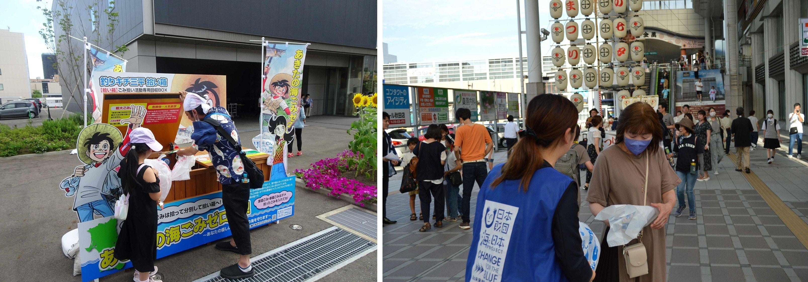 秋田駅・竿燈まつり会場周辺にて多くの方々にあきた海ごみゼロ活動周知啓発