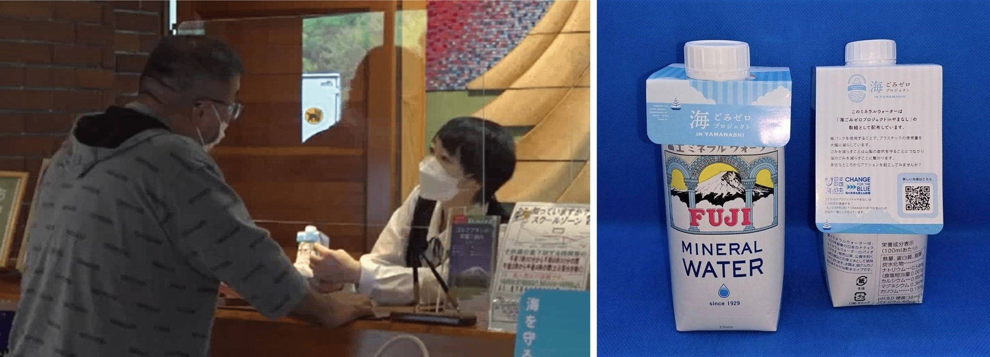 ミネラルウォーターがペットボトルでなく紙パックに入っていることに驚いた利用者や、海洋ごみ問題について知るきっかけになったという利用者がいました。