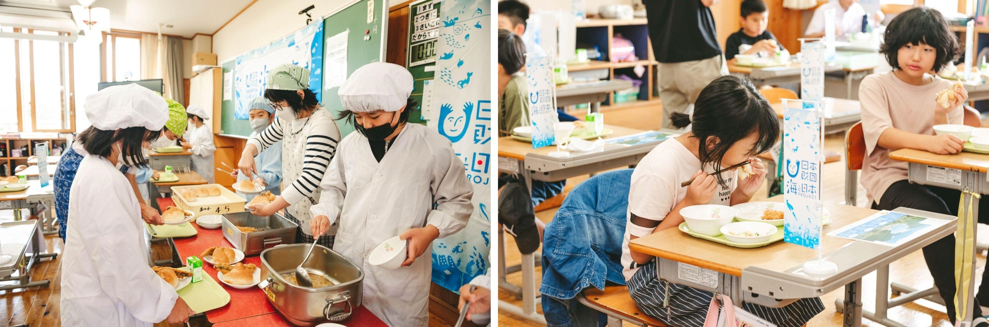 左:佐伯市立直川小学校 右:佐伯市立東雲小学校