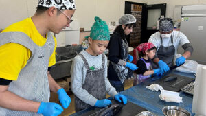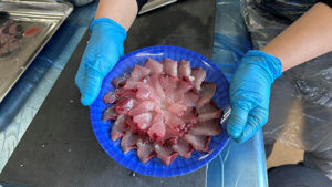 参加者は、自らが購入した魚を工房に持ち込み、スタッフの丁寧な指導のもと“おさかなさばき”に挑戦しました。