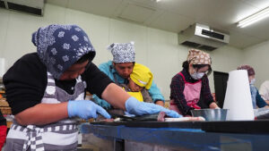 大人も子どもも一緒になって魚捌き!