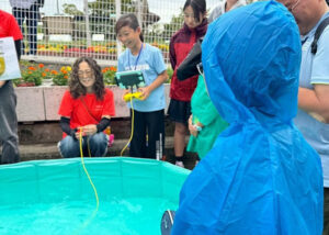清掃活動に続いて、名古屋港で水中ドローンを使った海中観察に挑戦。はじめにプールで操縦の練習を行い、その後、実際に海の中を観察しました。貝や魚だけではなく、海に沈んでいるごみを見つけた参加者もあり、海底ごみの存在について知ることができました。