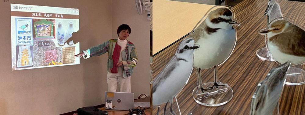 授業の始まりは、淡路島の海の環境とシロチドリのお話から。実はシロチドリは、淡路市と洲本市の両方で「市の鳥」に選ばれている、島にとってとても大切なシンボルです。