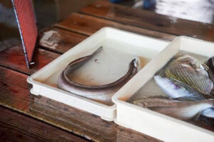 様々な種類の魚が運ばれ、せりにかけていく—五感で感じる漁港のエネルギーに、子どもたちは思わず身を乗り出して見入っていました。