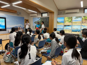 海の環境問題や鹿児島の海の変化について学ぶ「海と環境」班も、なぎさミュージアムでの学習を行いました。午前中は、複数のグループに分かれて重富海岸周辺に漂着したペットボトルや発泡スチロールなどの海洋ごみを調査。流れ着いたごみを種類ごとに分け、どのようなごみが多いのかを詳しく調べました。午後には、海の環境の変化について学び、海洋汚染や環境変化が海や生き物に与える影響を理解しました。その上で、今後マイクロプラスチックを減らすために自分たちができることについて意見を出し合いました。子どもたちは実際に多くのごみを目にし、身近な海の現状や環境保全の大切さを考える貴重な機会となりました。