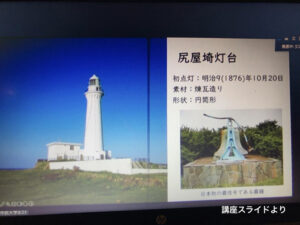 この後海外の灯台の紹介がいくつかあり、鬼ヶ島伝説のある島の防波堤灯台などデザイン灯台も紹介されました。