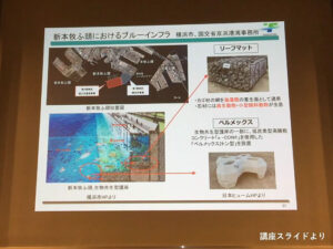 さらに、南アフリカのトーゴやマダガスカルなど海外でのODA事業での消波ブロック活用事例も紹介されました。