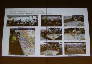 講師の活動はダイバーや環境の技術者としての調査だけではなく、多くの市民を巻き込んだ活動にも広がっています。グリーントライアスロンや横浜うみ博などに横浜港のジオラマを持ち込み、たくさんの市民にお声をかけ「横浜港へのあなたの思いを書き込んでください」、「横浜港をデザインしてみませんか」など市民からの生きたデータ収集にも力を入れています。横浜港のジオラマ展示とワークショップでは小学生を中心に900枚を超える付箋が集まったそうです。