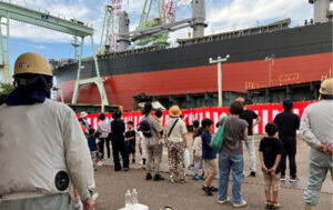 2025年8月8日、(株)新来島高知重工は高知市仁井田の造船所において、一般の方を対象に進水式見学会を開催しました。普段は関係者以外が立ち入ることのできない造船所に特別にご案内し、約250名の参加者が全長約180mの貨物船進水の瞬間を体感しました。