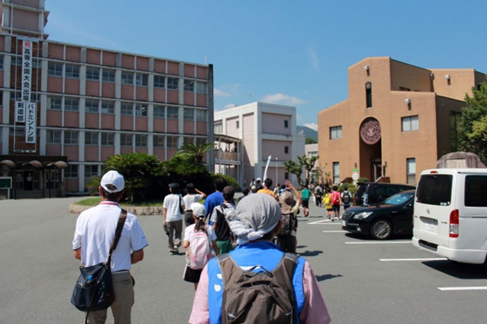 ① 鳥羽丸係留浮き桟橋から学校の高台の食堂に避難している様子
