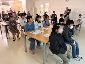 県立海洋科学高校の前田先生に講師をして頂き、<漁業には獲る漁業と育てる漁業の2種類があること>や<海で獲れた魚はどのようなルートで食卓に並ぶのか?>などを分かりやすく教えていただきました。また、赤潮などの養殖業の問題などについても触れ、参加した児童たちは既に魚についての知識をたくさん持っており、前田先生も驚いていた様子でした。