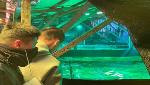 巨大水槽でエサやりを体験!