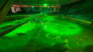 一般社団法人うみらいふは、2026年1月23日(金)に大分県立海洋科学高等学校の生徒と共に学ぶ「体験学習ツアー第四弾」を開催いたしました。大分県がヒラメ養殖の収穫量で日本一を誇ることから、今回は「ヒラメ養殖」に焦点をあて、大分県津久見市で養殖業を営む有限会社 山尾水産(以下、(有)山尾水産と表記)にご協力いただき、最先端のヒラメ養殖現場を視察しました。(有)山尾水産では、緑色のLED光照射を活用したヒラメ養殖を行っています。この緑色のLEDにより実際に生息する海の環境に近づけることができ、県の実証結果ではヒラメの成長速度を早めることが確認されています。今回の体験学習を通して、生徒たちは技術革新により進化した養殖場を見学することで、水産業に関する知識を深めていました。