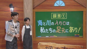 那覇市で海とつながる川ごみの調査をしたのは、芸人のあつきにぃにぃと那覇市立宇栄原小学校6年生の新垣めるさん。新垣さんはしまうみ探検隊で海なし県の岐阜の子どもたちとの交流プログラムに参加し、アユを通して川と海のつながりについて学習。沖縄にはない大きな川を目の前で見て学び、「海をきれいにするためには川をきれいにしないといけない」と感想を述べていました。