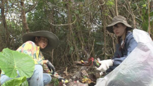 石垣市を調査したのは夏希さん。大量に流れ着く漂着ごみを、楽しく面白くをモットーにアースクリーンの活動をする縄文企画の田中秀典さんを訪ねました。