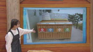 宮古ブルーと呼ばれるきれいな海の裏側からは、人が意図的に捨てたごみが山のように出てきました。一緒に調査をしてくれたボランティア団体『宮古の海をキレイにし隊』の井上美香さんは「回収できないごみもたくさんあるが、台風などの雨風でいずれ海へ流れて出てしまう懸念もある。ポイ捨てをした時のごみの行方を考えてほしい」と警鐘を鳴らしました。悲惨な現状を見た比嘉さんは「きれいなイメージしかなかったので目の前でみて凄くショック。改めてごみを適切に処理しなければいけないと感じた」と涙ながらにかたっていました。そして、去年設置された『拾い箱』も紹介。設置後ビーチ周辺のごみが約1/4に減少したことも報告しました。