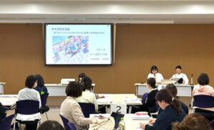 今回の成果報告会では、福井県と沖縄県宮古島の園児が協働し、遠隔で取り組んだ「海プロジェクト」の成果をそれぞれの園の教員が発表し、参加者とともにディスカッションをおこないました。福井と宮古島の海の違いから始まる学びは、「なぜしょっぱいの?」という疑問から始まり、魚や塩に関すること、船づくり、ゴミを拾うことへと多岐にわたって発展しました。また、改めて探究学習の過程や成果を振り返り、福井と宮古島という異なる地域を「海」を通じてつなぐ意義について、幼児教育に関わる参加者がラウンド方式で対話をしながらじっくり考えることができました。