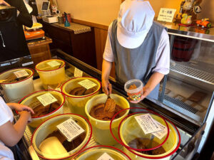 また、地元で量り売りの販売を続ける九重味噌さんに取材を行いました。必要な分を必要な時に、お気に入りの容器で購入できる量り売りはRキッズが思っているよりも昔から続いていて、たくさんの人が買い求めていることが分かりました。