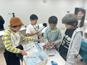 また、発表会前後や休憩時間には、お互いのテーブルを行き来しながら活発に交流する姿が見られ、持参した個性豊かな小道具や標本が交流のきっかけとなり、それらを見せ合いながら苦労した点や、その職業への思いなどを語り合いました。