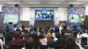 プロジェクトの集大成とも言える発表を前に、10人はそわそわと落ち着かない様子。そんなキッズたちを応援するため、去年のスーパーキッズたちが会場に駆けつけてくれました!また、前日に研究発表を終えた駿河湾の深海キッズたちもオンラインで見守ります。