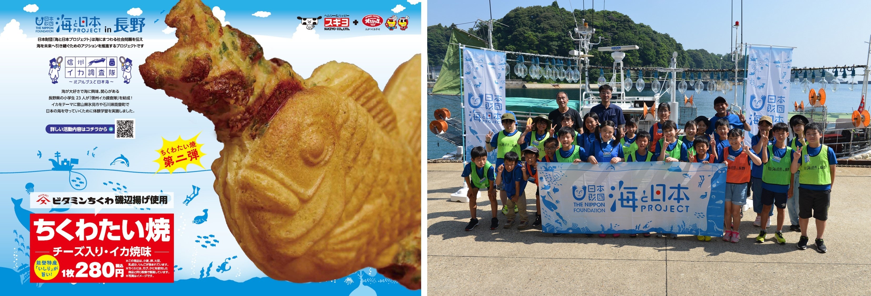 一般社団法人海と日本プロジェクト in 長野は、長野県内を中心に展開するたこ焼き、たい焼き店の「焼きたて屋」と石川県の食品メーカー「スギヨ」とコラボレーションし、海の未来について学んだ信州イカ調査隊(長野県の小学5、6年生23人)がパッケージをデザインした「ちくわたい焼き」を2023年10月1日(日)から長野県内外の焼きたて屋36店舗で発売します。