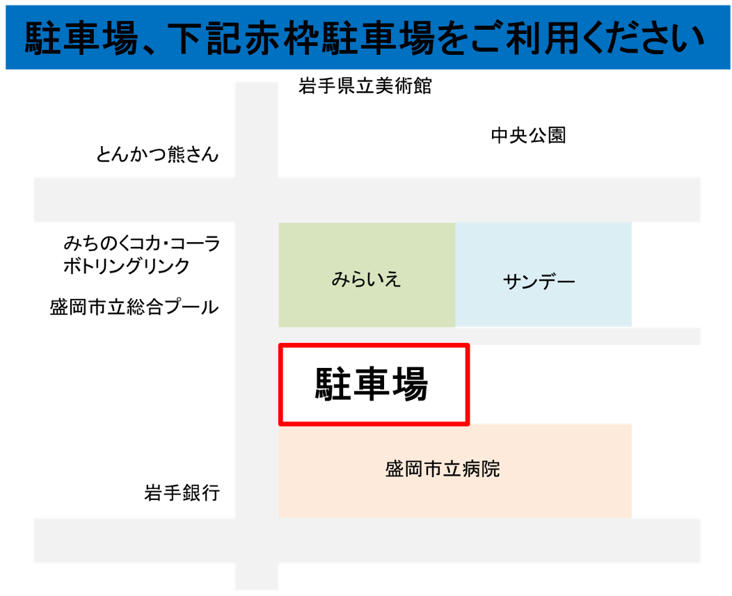 ■電車でご利用の場合 ■バスをご利用の場合 1.岩手県交通バス『太田線先人記念館』行き乗車、 盛岡駅前バスターミナル10番線のりばから向かいます。 2.盛岡駅からバスで約10~15分くらい、「県立美術館前」バス停で降ります。 「県立美術館前」バス停から徒歩約3分くらいです。 3.タクシーをご利用の場合 盛岡駅西口より約5分くらいです。 ■お車をご利用の場合 |