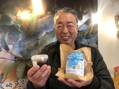 「ふぐ味噌」を販売する中﨑水産株式会社 中﨑さんは「こども達が描いたイラストがかわいく、シールのデザインは気に入っている。長崎は養殖トラフグ生産量が日本でも屈指の地域ということを長崎の方でも知らない方がたくさんいる。こういう活動を通して、こども達から知ってもらえればだんだん広がっていくんじゃないかと思う。“海の町 長崎 観光の町 長崎”をふぐでもっと元気にしていきたい。日本一のふぐ問屋を目指して頑張ります。」と語りました。