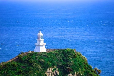 九州最南端、鹿児島県大隅半島の先端・佐多岬から更に50メートル沖に浮かぶ、大輪島に建つ白亜の灯台です。「日本の灯台の父」リチャード・ヘンリー・ブラントンの設計・指導により建てられ、日本の灯台50選に選ばれています。