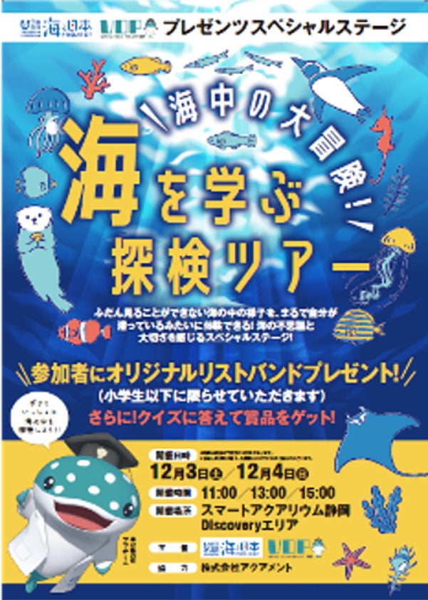 一般社団法人 子ども冒険体験創造ラボは、2022年12月3日(土)〜12月4日(日)の2日間、暮らしに寄り添う新しいスタイルの水族館 SMART AQUARIUM SHIZUOKA(スマートアクアリウム静岡)でVirtual Ocean Project 企画イベント「海中の大冒険! "海"を学ぶ探検ツアー」を開催いたします。