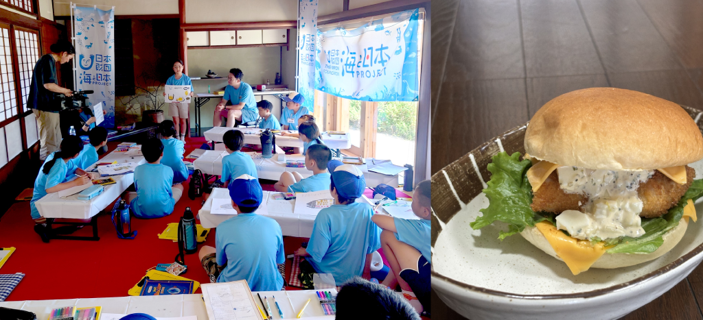2024年は海と日本プロジェクトのオリジナル体験学習イベント「かがわ離島レンジャー ミッション:未来の海を守れ!」の実施にも協力いただき、コラボ企画として子どもたちがイベントで考えた“海を休ませる”メニュー「チーヌバーガー」も発売されました。