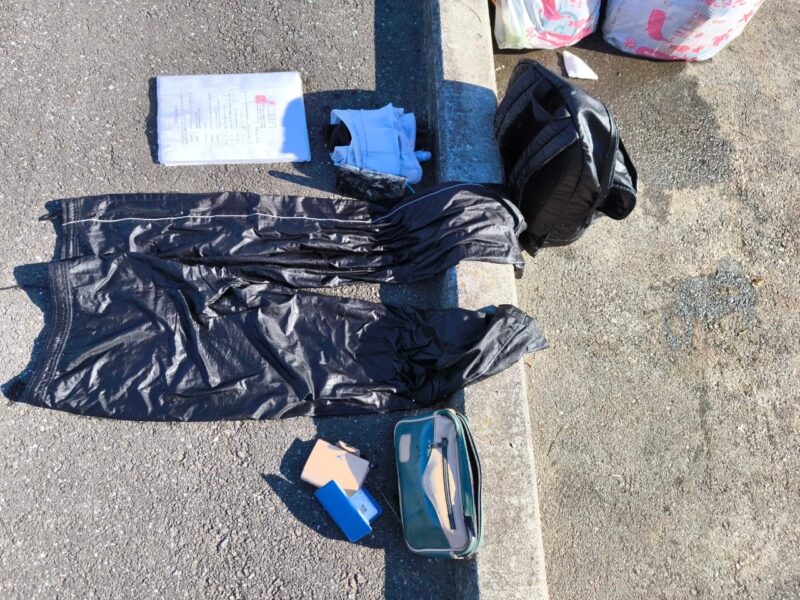 中には財布や書類などがたくさん入っていた。住所や名前が分かったので警察に届けた。綾瀬川沿いのご近所の方の物で、犯罪に巻き込まれていないことを願う。