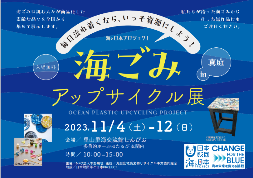 NPO法人木野環境は、11月4日~12日に「海ごみアップサイクル展 in真庭」を開催いたします。 このイベントは、日本財団が推進する海...