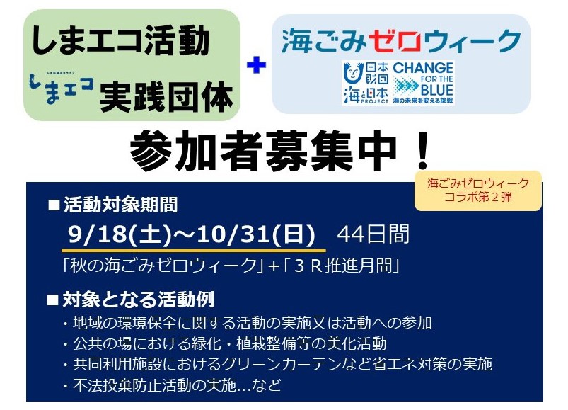 「しまエコ活動」「海ごみゼロウィーク」コラボ 島根県内の環境保全活動を募集!
