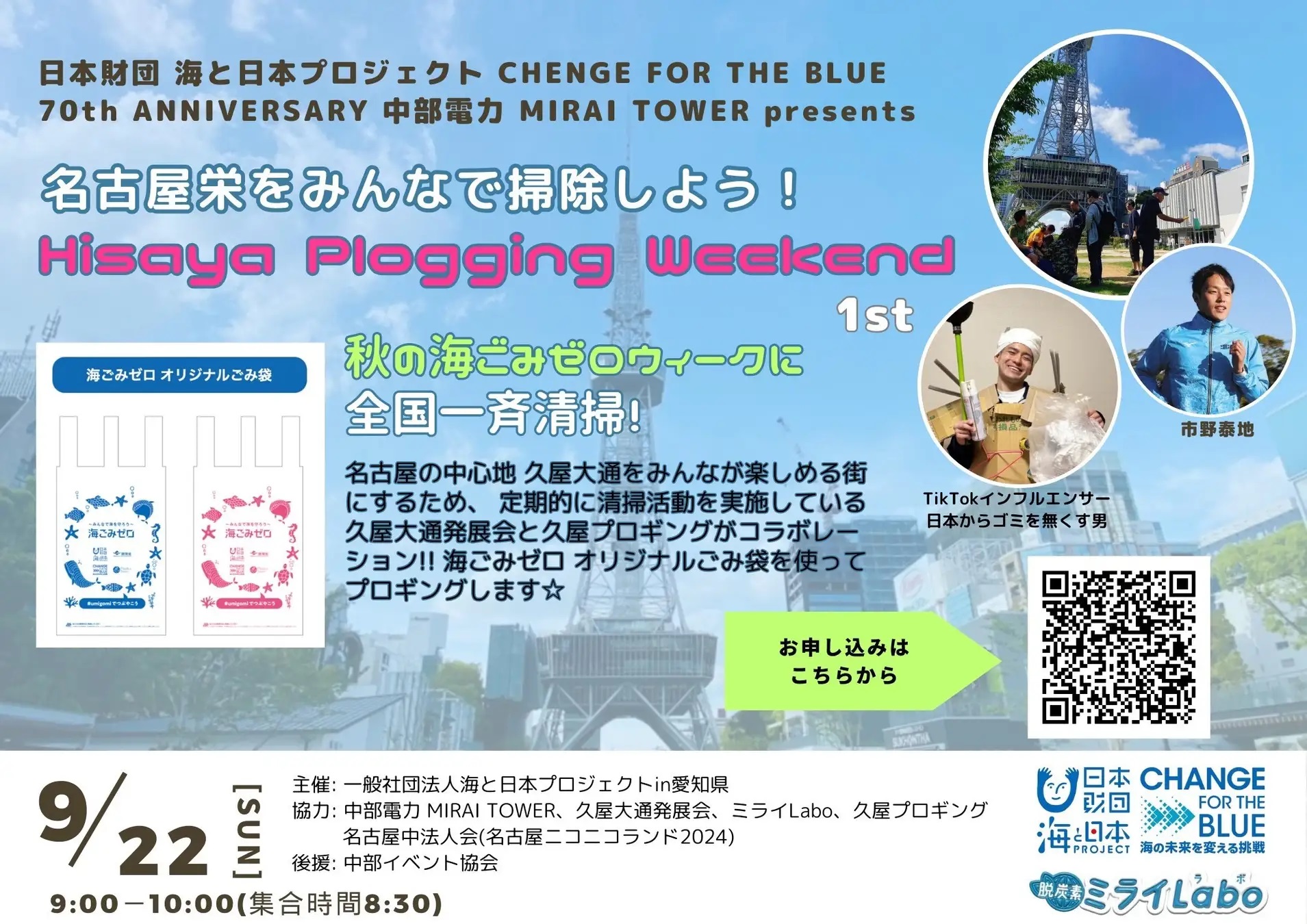 一般社団法人海と日本プロジェクトin愛知県は、9月22日(日)に『Hisaya Plogging Weekend 1st』のイベントを開催し...