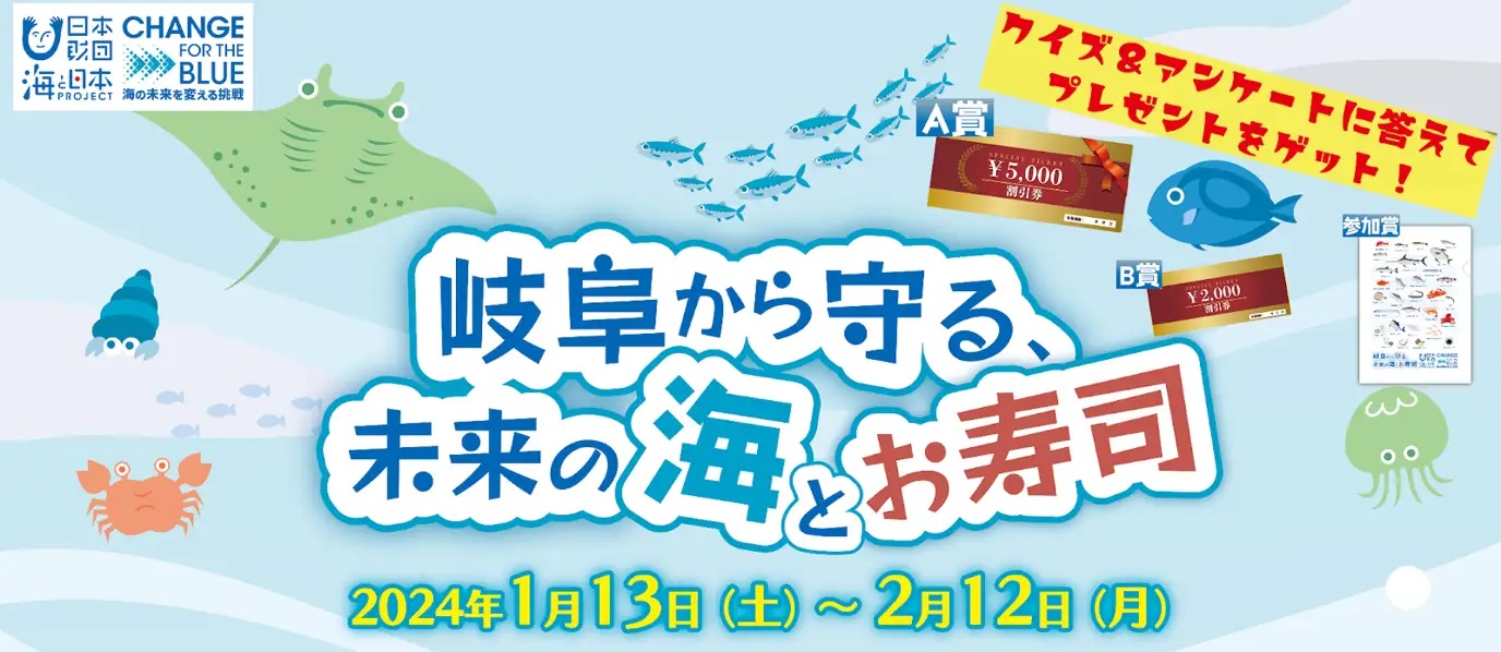 一般社団法人海と日本プロジェクト岐阜は、2024年1月13日(土)~2月12日(月)に「岐阜から守る、未来の海とお寿司」をテーマに、ぎふ初寿...