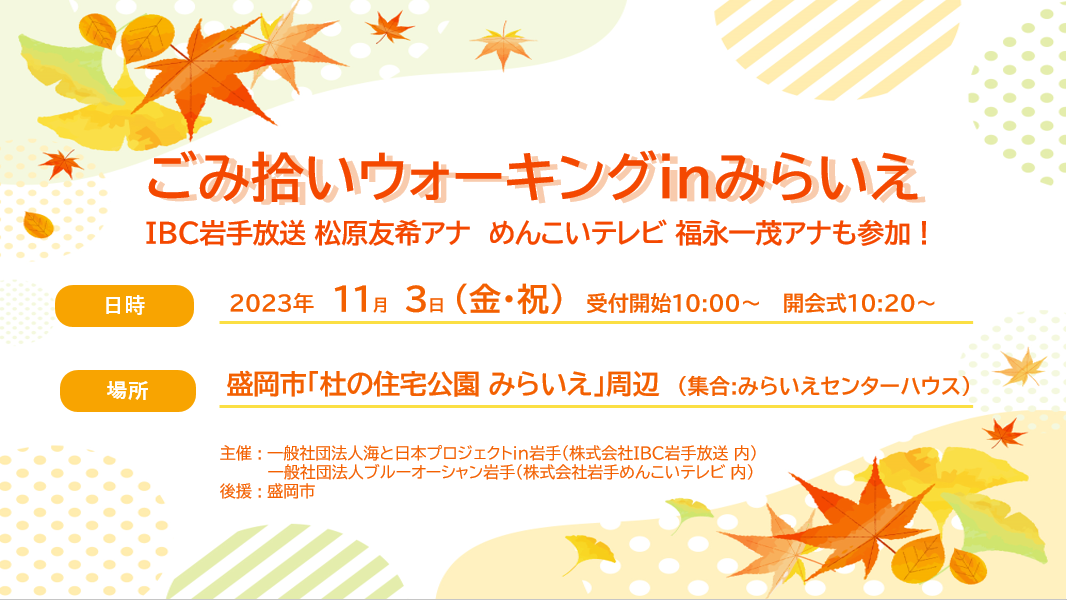 一般社団法人海と日本プロジェクトin岩手と一般社団法人ブルーオーシャン岩手は、2023年11月3日(金・祝)に「ごみ拾いウォーキングinみら...