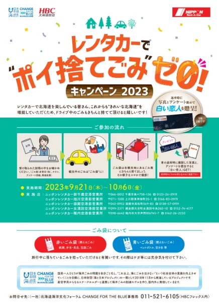 観光地でごみのポイ捨てをやめて!「白い恋人」をゲット!「レンタカーでごみゼロ!キャンペーン2023」
