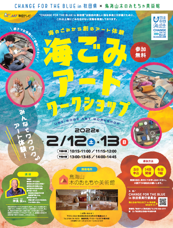 CHANGE FOR THE BLUE in秋田県実行委員会は、由利本荘市の海岸の海ごみを材料にして、自由な発想でつくる海ごみアート体験、2...