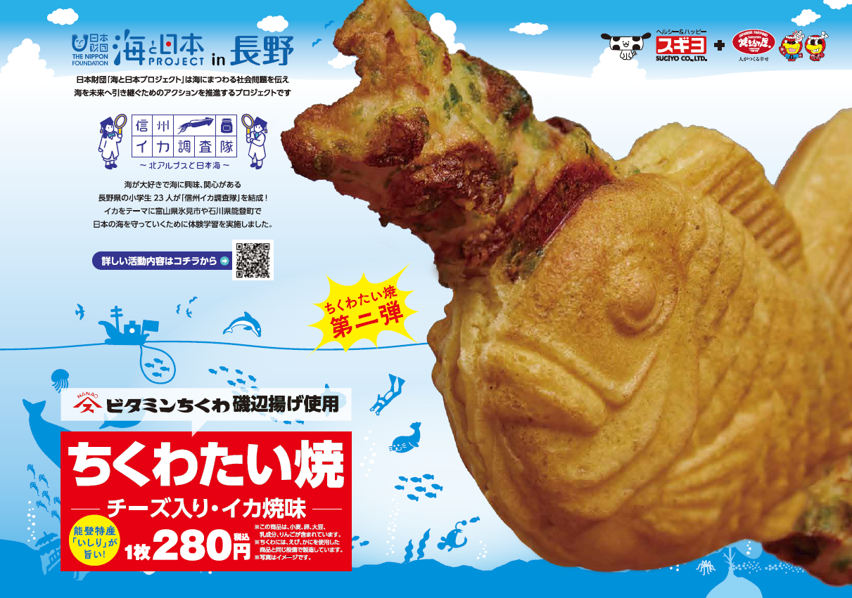 信州イカ調査隊の子供たちが未来の海を願ってパッケージをデザイン 焼きたて屋「ちくわたい焼」が新発売&販売イベントを開催