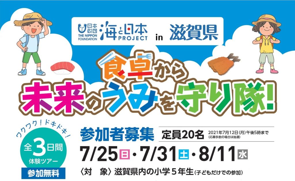 海と日本プロジェクトin滋賀県は、子ども達が環境保全について考える体験学習イベント「食卓から未来のうみを守り隊!」を開催します。参加者は、応...