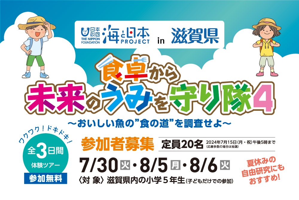 一般社団法人 海と日本プロジェクトin滋賀県は、滋賀県内の小学5年生を対象にした学習体験イベント「食卓から未来のうみを守り隊4」を7月30日...