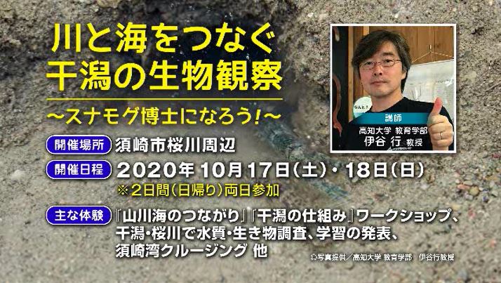 「海と日本プロジェクトin高知県」は10月17日(土)・18日(日)に、須崎市の桜川河口付近で、高知で見つかった化石生物・オオスナモグリをフ...