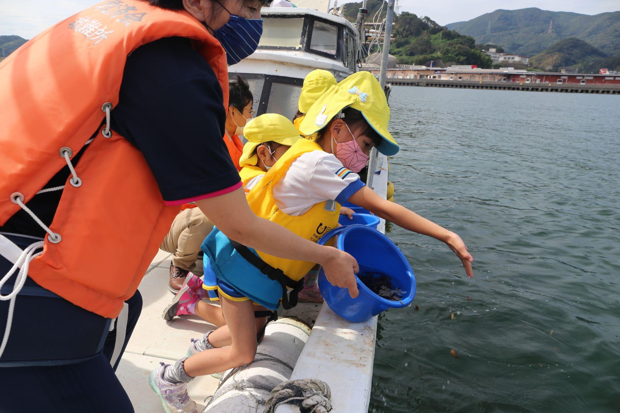 大村湾フェスタ連絡協議会は、時津町内の幼稚園児が参加して、大村湾の環境や生息する生き物などについて学んだ後、漁船に乗り込み漁師の方々とカサゴ...