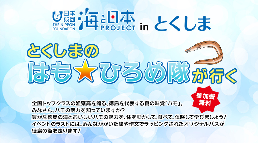 海と日本プロジェクトinとくしまでは、次世代へ海を引き継ぐために、海を介して人と人とがつながる“日本財団「海と日本プロジェクト」”の一環とし...