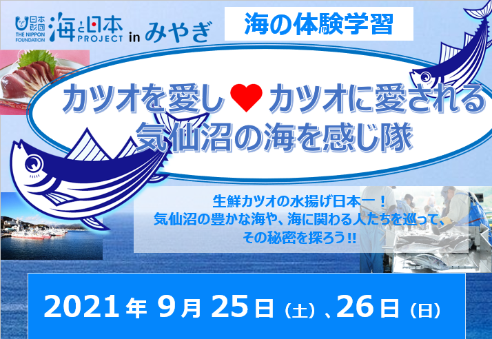 海と日本プロジェクト in みやぎ実行委員会は、2021年9月25日(土)26日(日)の2日間、カツオを通して、子どもたちに海と人との関係を...