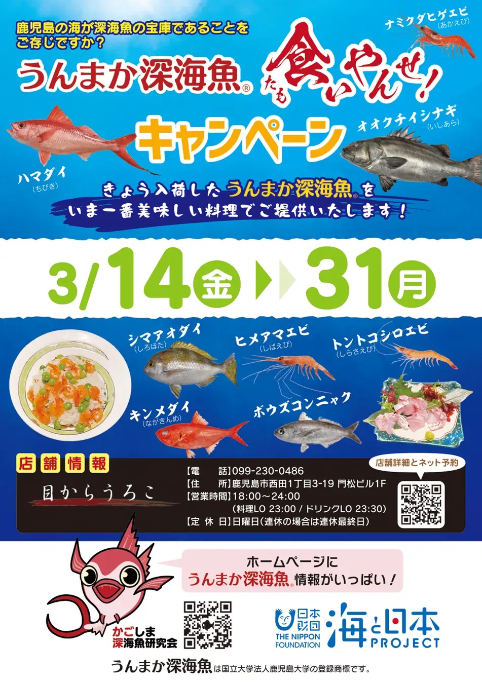 鹿児島の海を守り、食文化を創成する!かごしま深海魚研究会×海鮮料理店「目からうろこ」『うんまか深海魚 食(たも)いやんせ!』メニューイチ押し期間スタート!