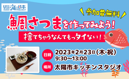 海と日本プロジェクトinえひめ実行委員会は、愛媛県内の小・中学生とその保護者を対象に、愛媛県の郷土料理である「鯛さつま」作りを通して地元の海...