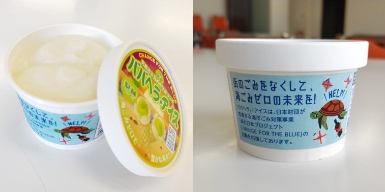 CHANGE FOR THE BLUE in 秋田県実行委員会は、男鹿市立潟西中学校の生徒が考案した「ババヘラ・アイス(カップ)梨味」(有限...